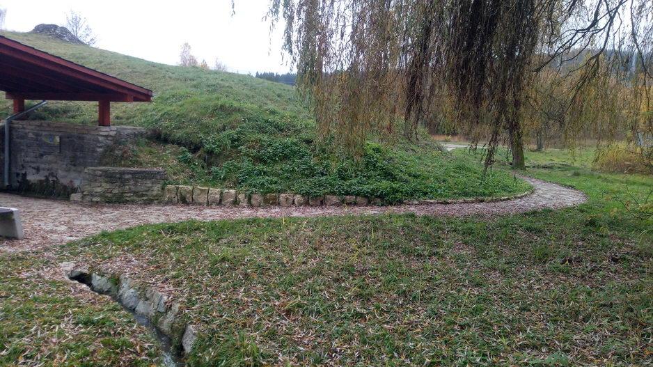 V okolí sa nachádzali lavičky, koše na odpadky a stojan na bicykle. Z druhého prameňa pri travertínovej kope je napájané travertínové jazierko, dlhé približne 10 metrov. V jazierku boli viditeľné bubliny plynu unikajúceho z dna. Voda v jazierku bola číra.