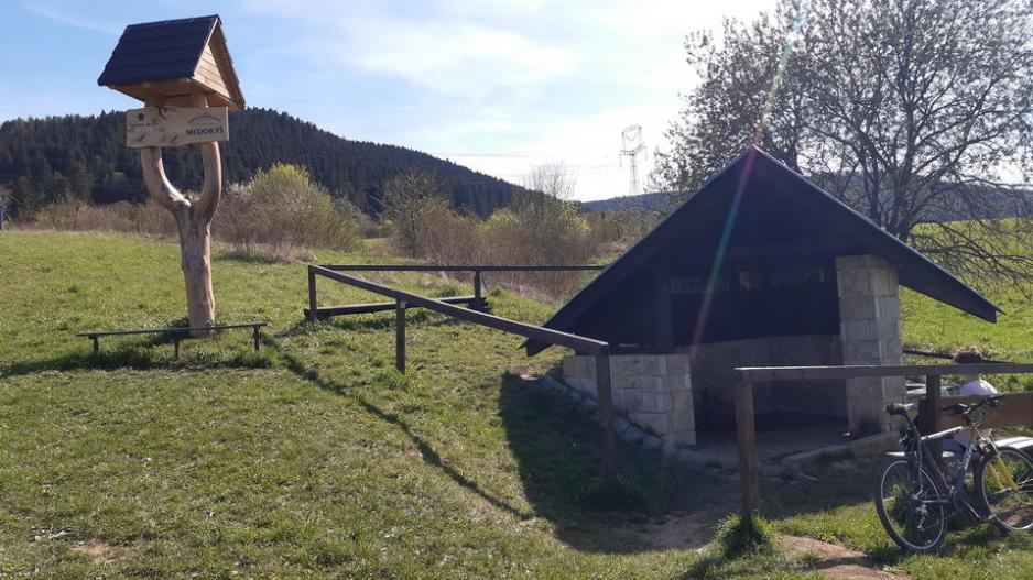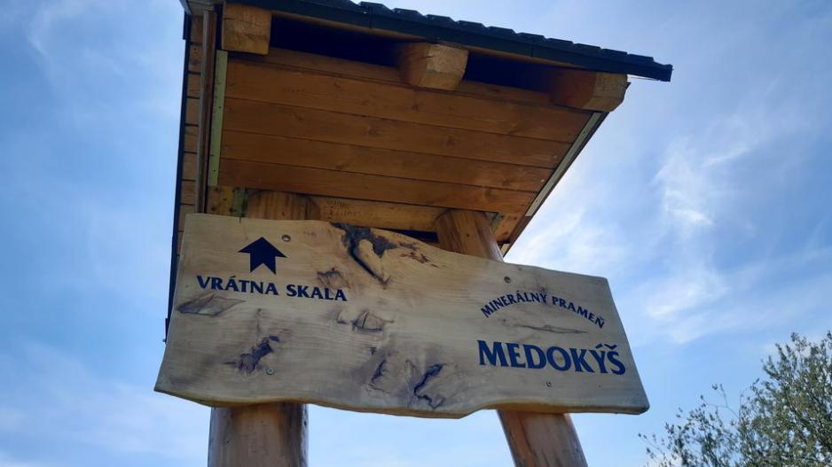 Prameň sa nachádza v obci Liptovské Sliače - časti Zúbra. 38 metrov pod ochranným pásmom vodojemu. Od obce k nemu vedie nespevnená, poľná cesta. Z múrika je vyvedená kovová rúra. Z nej vyteká voda stálym prúdom. Pri dopade vytvára nánosy červenohnedej farby. Voda je ďalej odvádzaná plastovou rúrou popod betónovú podlahu a po pár metroch sa vlieva do potoka Zúbra. Nad prameňom je drevená konštrukcia strechy. Je pokrytá plechom. Pod prístreškom - v stene sú umiestnené lavičky a ďalšie sa nachádzajú zvonku. Nechýba drevená tabuľa s textom "MINERÁLNY PRAMEŇ MEDOKÝŠ" a "VRÁTNA SKALA" s ukazovateľom smeru k prírodnému úkazu. Voda je pocitovo studená. Má chuť dobrej, zemitej kyselky. V odobranej vzorke plávali drobné červenohnedé čiasočky. Necítiť zápach plynných zložiek. Prameň je intenzívne využívaný na pitné účely.