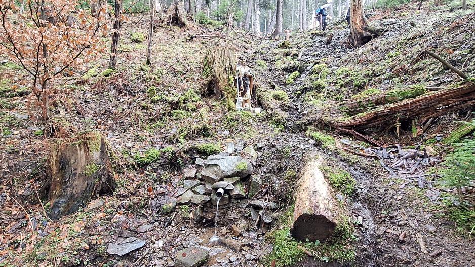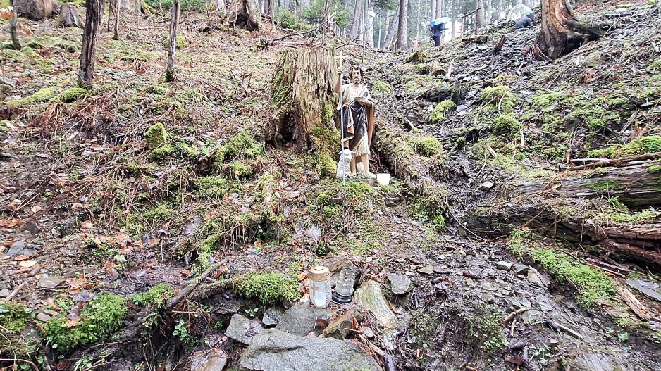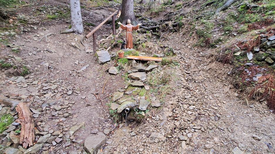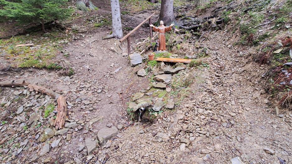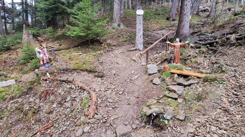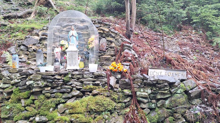 Chodníkom od kostola Panny Márie, Matky Cirkvy sa popri prameni Srdca Panny Márie, prameni Božského Srdca Ježišovho a prameni Lurdskej Panny Márie po chodníku cez les dád zísť k očnému prameňu pri ktorom sa nachádzajú ešte tri pramene označené súsošiami svätých. Na stromoch sa nachádzajú dosky s nápismi "VIERA", "NÁDEJ", "LÁSKA" z listu Korinťanov 13:13, ktorí tvrdili že najväčšia z nich je "LÁSKA". Pramene sú často navštevované a vodu z očného prameňa používajú ľudia zblízka aj zďaleka. Okolie prameňov je bez znečistení, prostredie veľmi príjemné no prístup mierne náročný cez les a po kameňoch.