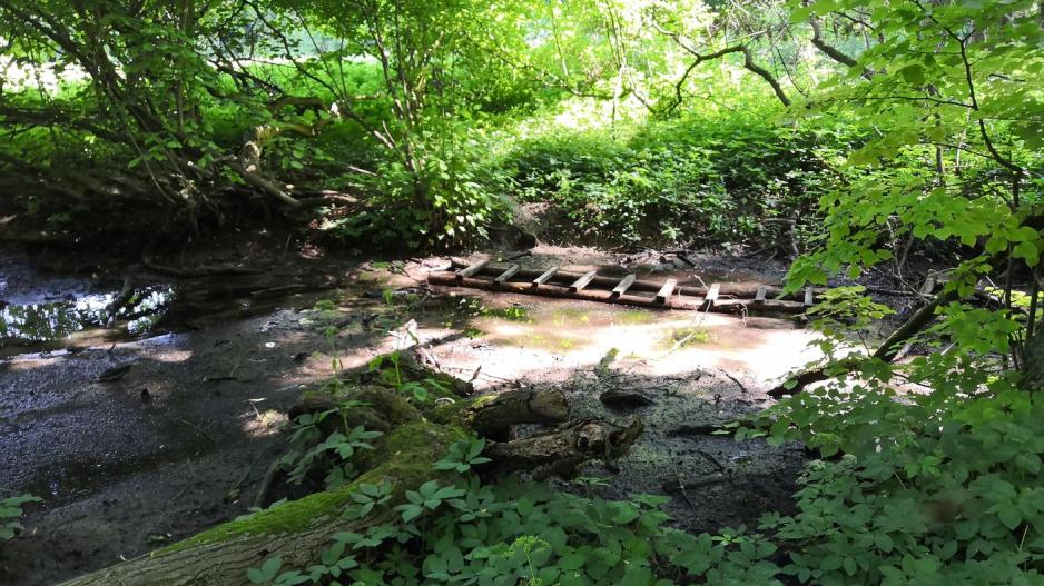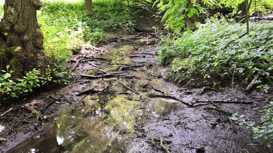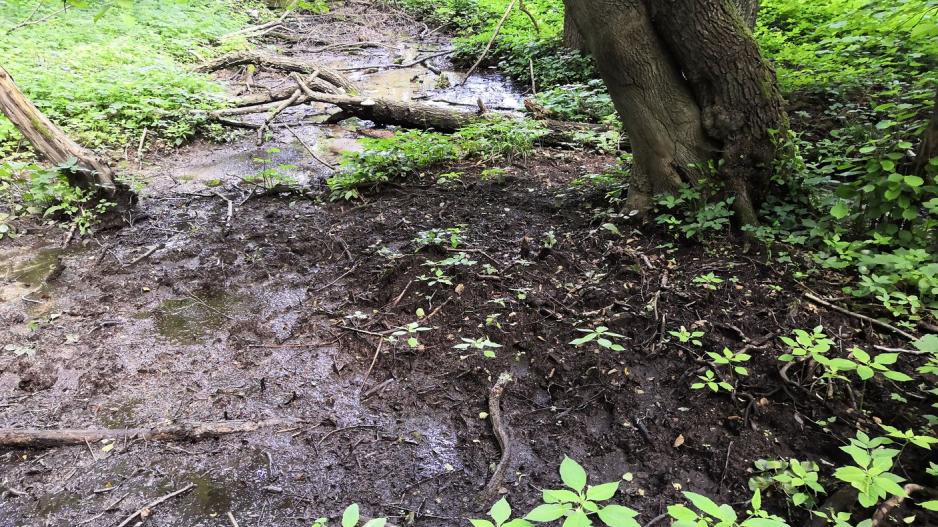 Prameň Hukovho potoka nemá presnú pozíciu nakoľko má viacej zdrojov vyvierajúcich alebo mokvajúcich v lesíku. V čase vytvárania záznamu bolo po dlhodobých dažďoch. Najsilnejší zdroj by bol zistiteľný po dlhších suchách.