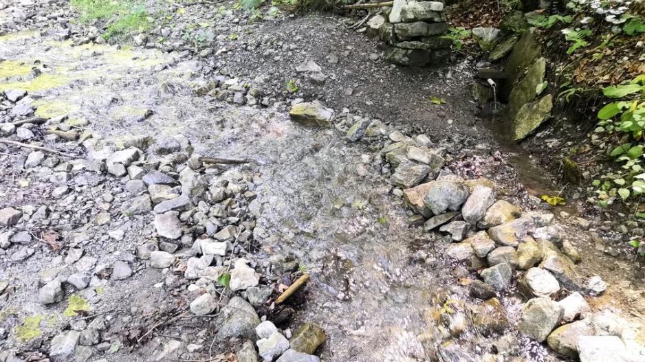 Nad chatami a prístreškom v Tiesňavách sa nad ľavou zákrutou priamo pri potoku nachádza prameň vody vytekajúci z rúrky.