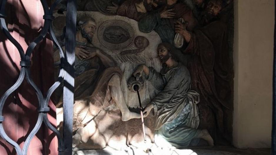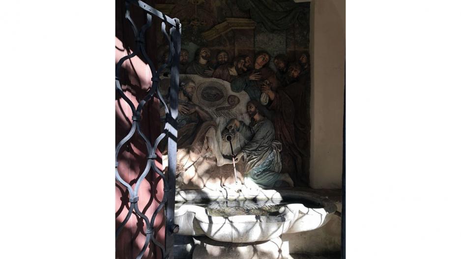 V murovanej kaplnke Tretieho zastavenia - umývania nôh apoštolov Ježišom Kristom je snímačom pohybu aktivovaný prameň.