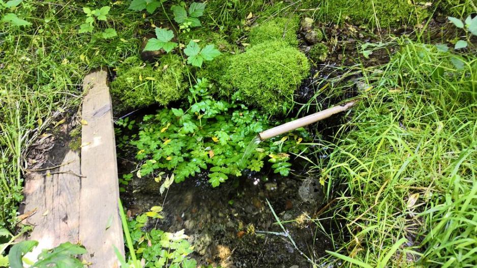 V kríkoch, nižšie pod lúkou s domom a naľavo cesty vyviera prameň vody a je zachytený z povrchu do rúrky. Prístup od cesty alebo smerom od domu bol v roku 2020 sťažený potrebou vyhnutiu sa žihľave pri zostupe k prameňu z chodníka - cesty.