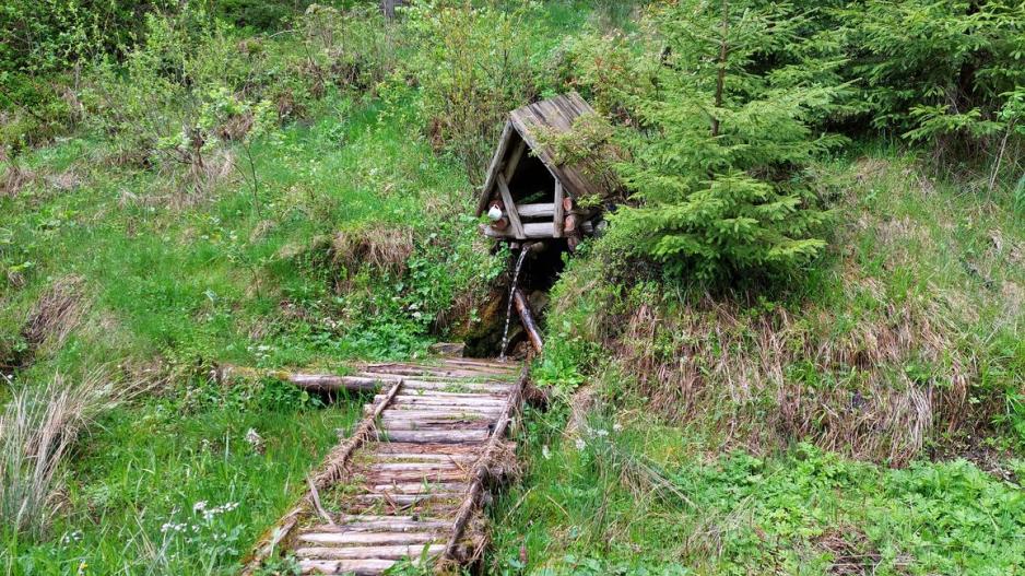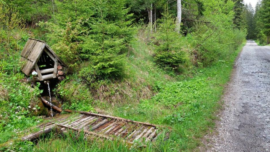 Naľavo od cesty je staršia studnička s prístupom po drevenom rošte. Zdroj vody ja ale povrchový s vyššie položenými prameňmi.