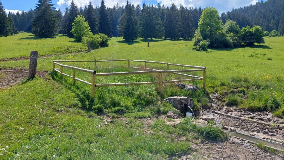 Prameň je zachytený do kovovej rúry. Tá je obmurovaná . Z prielivovej, kovovej rúry, cez vloženú plastovú fľašu bez dna, vyteká voda usmerneným prúdom. Voda je studená, číra, bez zápachu a viditeľných sedimentov. Voda dopadá čiastočne do plastovej nádoby a hlavný prúd na betónový blok a ďalej steká do žľabu na napájanie dobytka. Nad studničkou je ohradené, ochranné pásmo. Okolo boli porozhadzované prázdne plastové fľaše z nápojov. V blízkosti prameňa sa pásol dobytok.