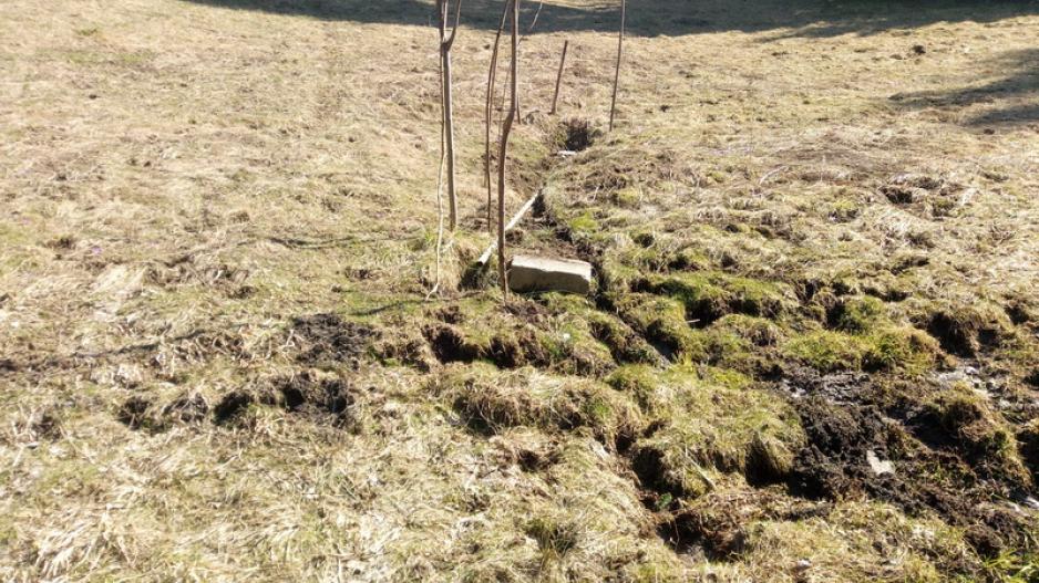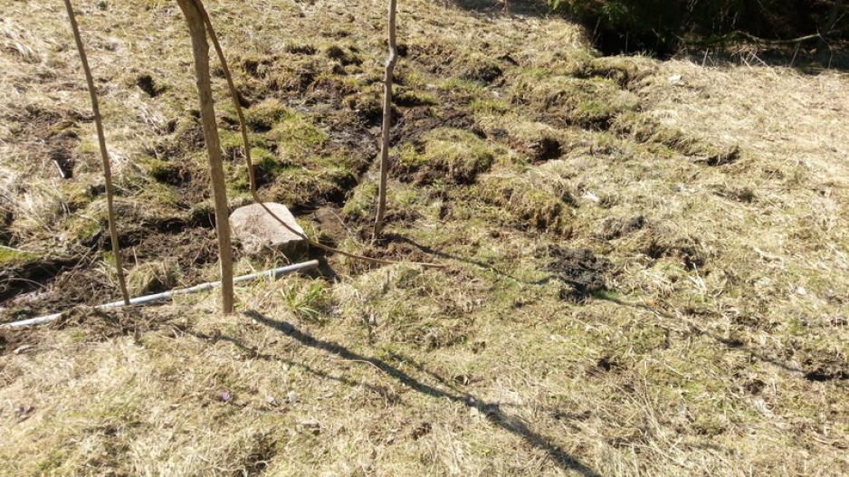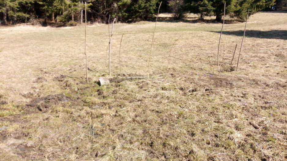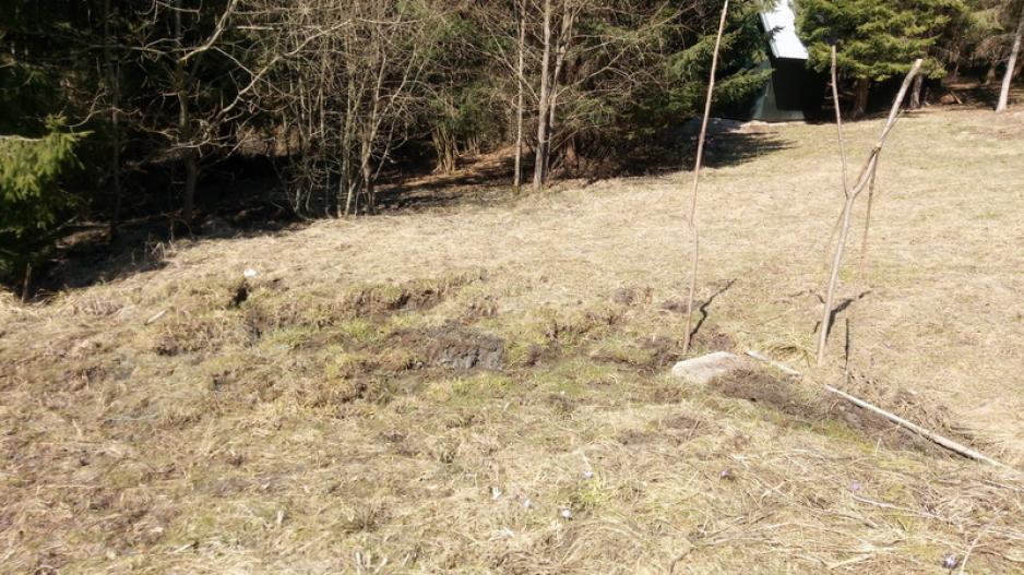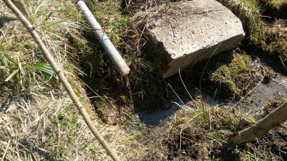 Prameň na lúke medzi dvomi poľovníckymi chatami. Voda z prameňa bola zachytená do betónovej skruže na ktorej bola vo vrchnej časti osadená obruč z plechu a voľne prykrytá plechom kruhového priemeru. Horný okraj skruže bol pod úrovňou terénu. Plech bránil vnikaniu hliny do vody. Zo skruže bol prameň ďalej vedený vodovodnou rúrou a ústil niekoľko metrov pod skružou. Výtok z rúry vsakoval voľne do pôdy ktorá bola rozmočená. Voda v skruži bola číra, studená, bez zápachu a viditeľných sedimentov. Vodu používajú na pitie v blízkych chatách.
