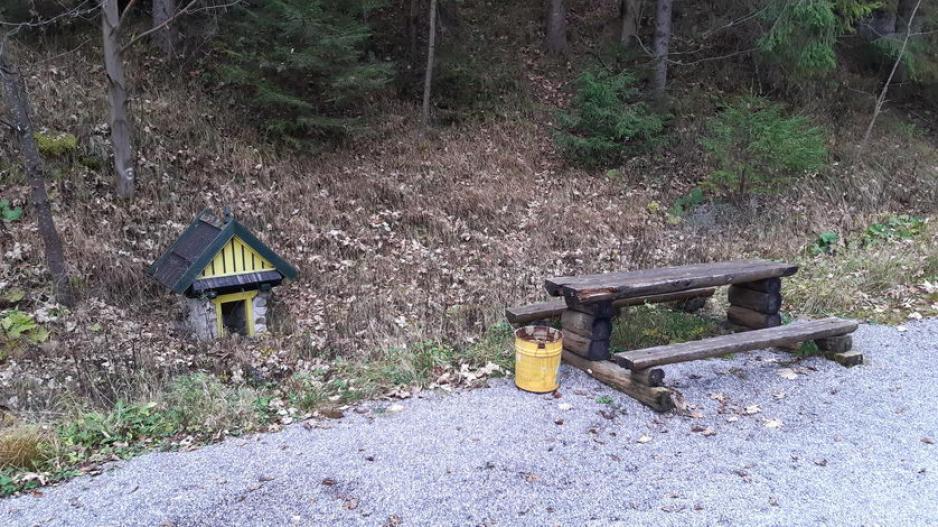 Voda z prameňa je zachytená do vybetónovanej skruže z ktorej vychádza prielivový, betónový žľab. Nad prameňom je stavba studničky. Steny sú z kameňov a vrch tvorí drevená konštrukcia striešky pokrytá drevenými šindľami. Voda vo vnútri studničky bola viditeľná. No pri návšteve nedosahovala hladina vody prielivový žľab. Takže voda z neho netiekla. Lístie bolo aj v žľabe aj vo vnútri studničky - vo vode. Studnička sa nachádza vedľa ďalšieho zroja vody. Nachádza sa na bezplatnom, frekventovanom parkovisku pre vozidlá s prekrytým sedením a stojanom na bicykle. Voda z prameňa nie je prístupná pre imobilných kvôli jarku s vodou medzi parkoviskom a studničkou.