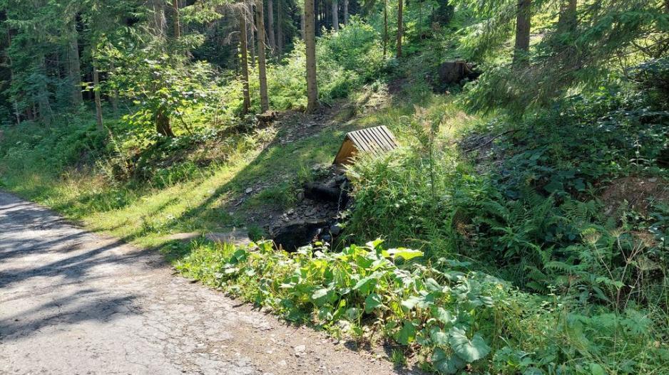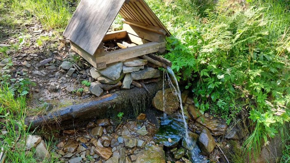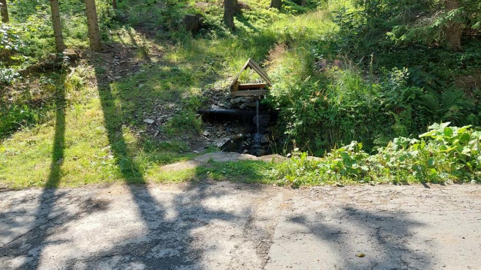 Severne nad Oravským Veselým je studnička osadená v potoku