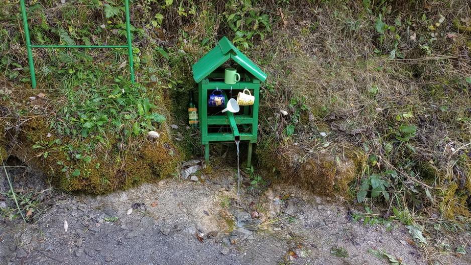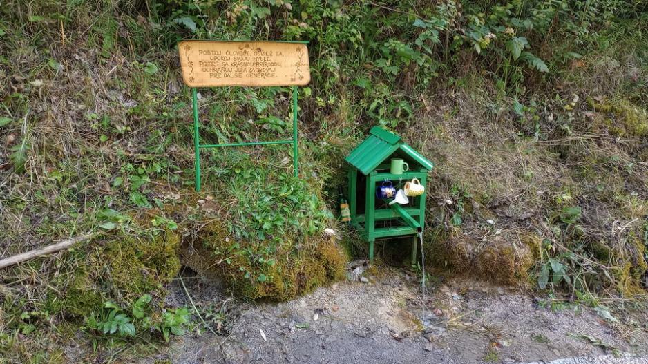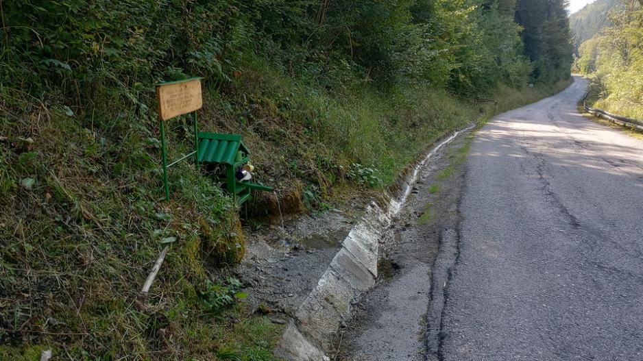 Hneď vedľa asfaltovej cesty, vedúcej z Banskej Bystrice na turistické miesto Šachtička, je v brehu zachytený prameň. Prúd vody je zachytený do kovovej, štvorcovej rúrky natretej zelenou farbou. Z konca vyteká stálym prúdom studená, číra voda bez zápachu a viditeľných sedimentov na odtoku. Dopadá na neupravené kamenné podložie. Ďalej odteká betónovým žľabom povedľa cesty. Prameň je prekrytý stavbou studničky z dreva a kovu a drevenou strechou. Celá je natretá zelenou farbou. Na vešiakoch a okolí sú umiestnené porcelánové hrnčeky, fľaše a lievik. Turistami je prameň intenzívne využívaný na pitné účely.