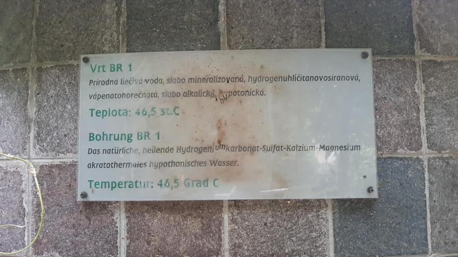 je prírodná liečivá voda, obyčajná, hydrogenuhličitanovo-síranová, vápenato-horečnatá, horúca, hypotonická, s celkovou mineralizáciou 709,156 mg.l-1, s teplotou vody 46,5 oC a s obsahom plynu CO2 90 mg.l-1,