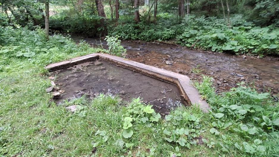 Priamo pri potoku je vybudovaný betónový záchyt prameňa plný usadenín. Bohužiaľ v roku 2023 sa mi nepodarilo zistiť význam tejto bahennej zádrže prameňa. Z nepotvrdených zdrojov som zistil, že aj tento prameň sa niekedy využíval. Priame miesto výveru sa mi nepodarilo lokaliizovať