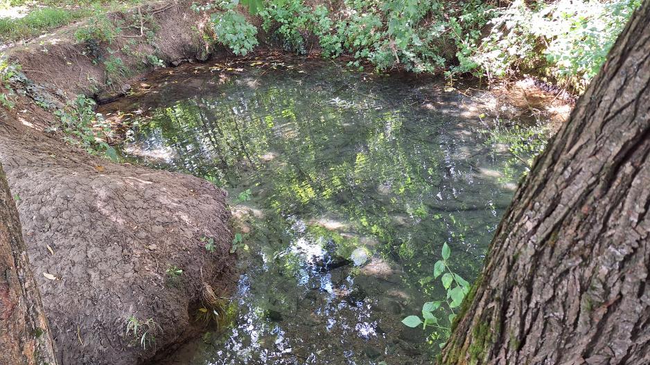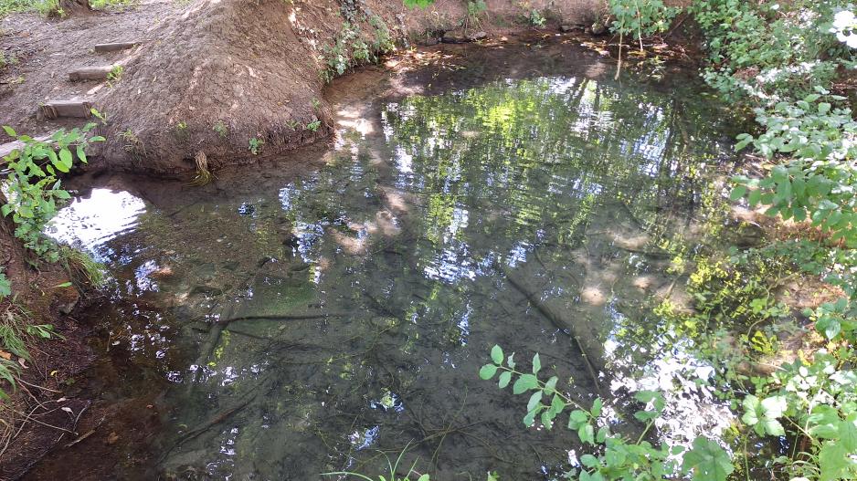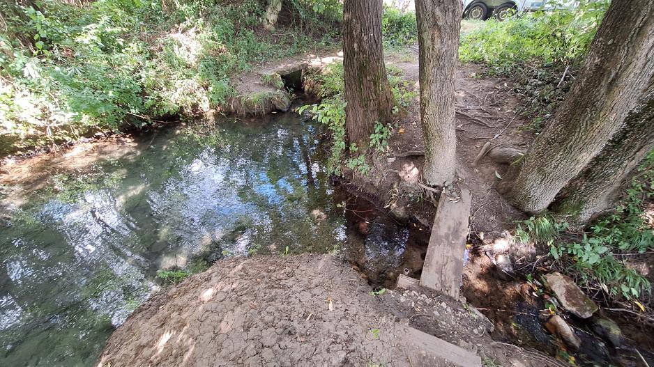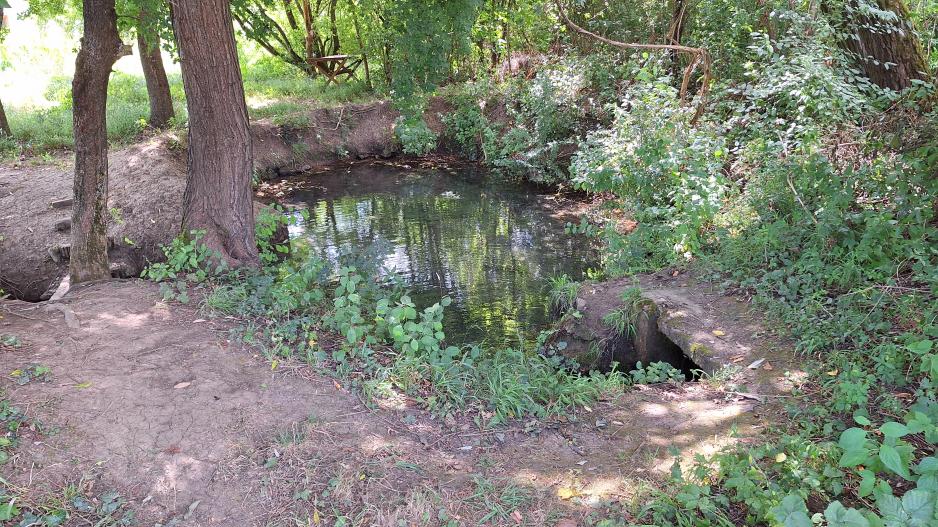 Pod družstvom, pri potoku zadná studňa sa nachádza výtok prepadu z vodného zdroja. Silný prúd vody vyteká z kameninovej rúry do melo vytvoreného jazierka a potom žľabom dole lúkou. Jazierko slúži ako napájadlo pre kone z ranču Santána.